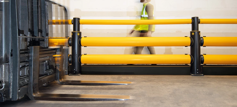 Ground-level protection from vehicle forks, preventing damage and injury. It also acts as a pallet stop for stored goods.