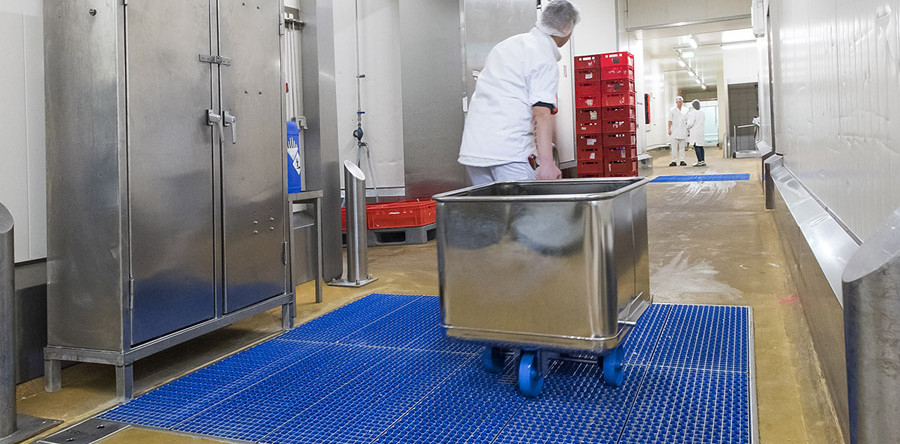 The fine-mesh, special-steel grates enable low-vibration passage of industrial trucks with narrow rollers. They are perfectly suited for carts such as smoking and cooking ones as well as trolleys.