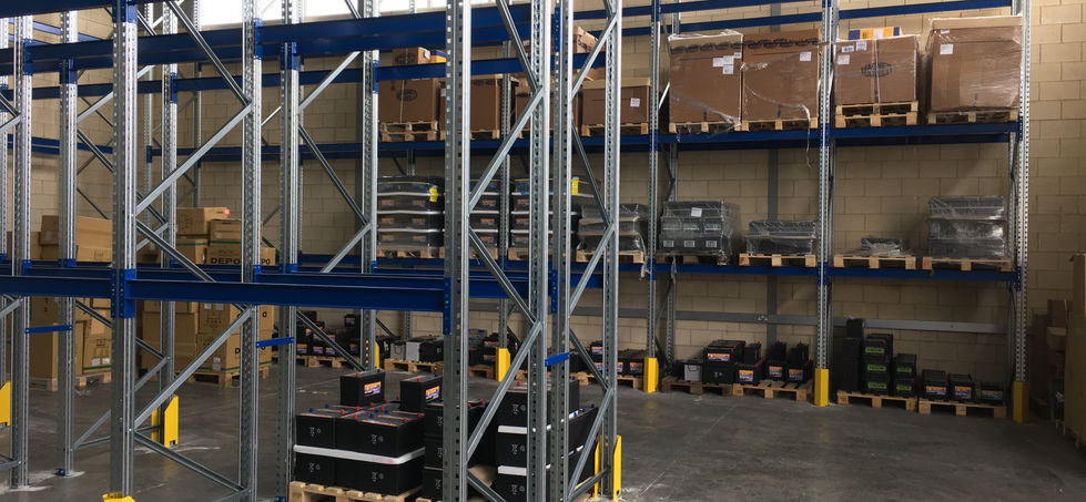 Design and installation of pallet racks for new warehouse. Complete with protectors and HD MDF wood for closing shelf levels.